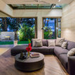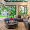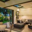плавно перетекающие пространства из дома в сад. стеклянная крыша веранды