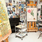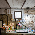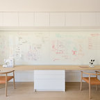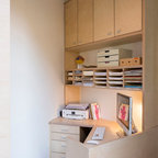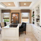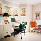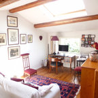 Inspiration for a mid-sized country study room in Lyon with beige walls and a freestanding desk. — Houzz