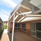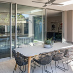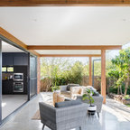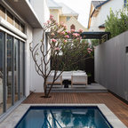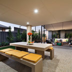 Inspiration for a large contemporary backyard patio in Sydney with a pergola. — Houzz