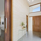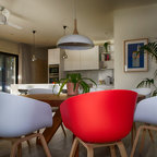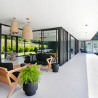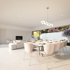 Design ideas for a contemporary open plan dining in Melbourne with beige walls and beige floor. — Houzz