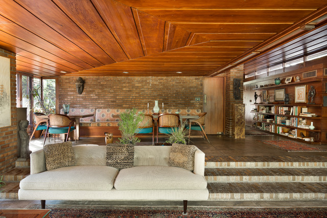 Photo of a midcentury open concept living room in Kansas City. — Houzz