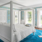 This is an example of a traditional l-shaped eat-in kitchen in Dublin with blue cabinets. — Houzz