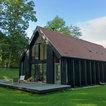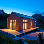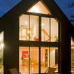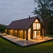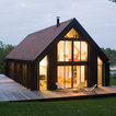 La sobriété du chalet, les volets rabattables, l'alignement des fenêtres rectangulaires Peut-être trop sobre (un peu froid) et trop en hauteur.