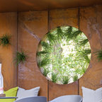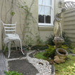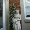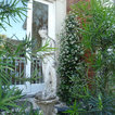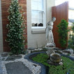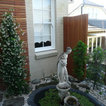 Here Kempas Slat Screen is seen to contrast with the whitish statue accentuating the features, whilst the Star Jasmine harmonises.