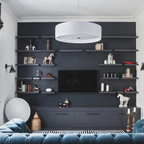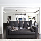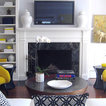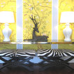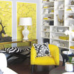 Sunny safari. Monochromatic black and white is a simple entry point into safari style, but the addition of bright yellow lends a fresh, contemporary feel to this eclectic living area. Assorted safari animals are also hidden on the shelves, including giraffes and an elephant, keeping the elegant antelope on the side table in good company.