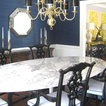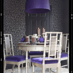 Style Secret: Strong Color If there's one color scheme that anchors this style, it's black and white, which epitomizes the sharp contrast that characterizes Hollywood Regency interiors (and shows up well in films). But jolts of bright, juicy color lend the energy that the look demands. Think turquoise, fuchsia, tangerine, regal purple. Keep the palette focused to avoid a kitschy rainbow effect. Behind the scenes: Layer in color in a way that celebrates contrast. A teal chair against a sapphire-blue wall won't pop in the same way that a red one against bright yellow will. Metallics also can help enhance and amplify the brights, as long as they don't compete with them.