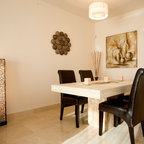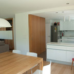Inspiration for a mid-sized contemporary kitchen/dining combo in Barcelona with white walls and no fireplace. — Houzz