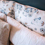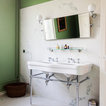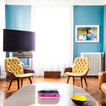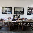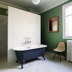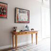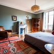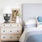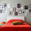 - I like how the pictures are hung over the headrest - I like the subtle, calming wall color