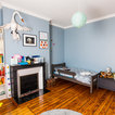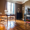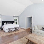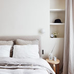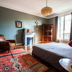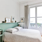 Photo of a contemporary bedroom in Paris with grey walls and medium hardwood floors. — Houzz