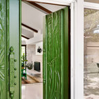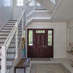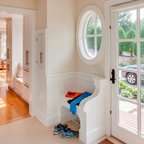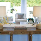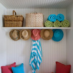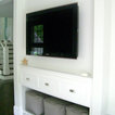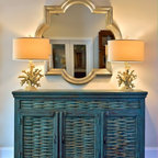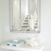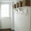 Maybe just a small floating shelf and mirror in entry way - I think the wicker chest that is there is TOO BIG