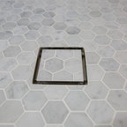Inspiration for a mid-sized traditional master bathroom in Chicago with recessed-panel cabinets, white cabinets, a curbless shower, a two-piece toilet, white tile, subway tile, white walls, marble floors, an undermount sink, marble benchtops, white floor, a hinged shower door and white benchtops. — Houzz