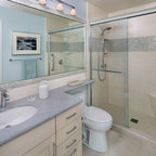 From out dated to high-end hotel, this master suite was brought from the 1980's to date both by look and by function.