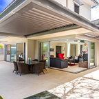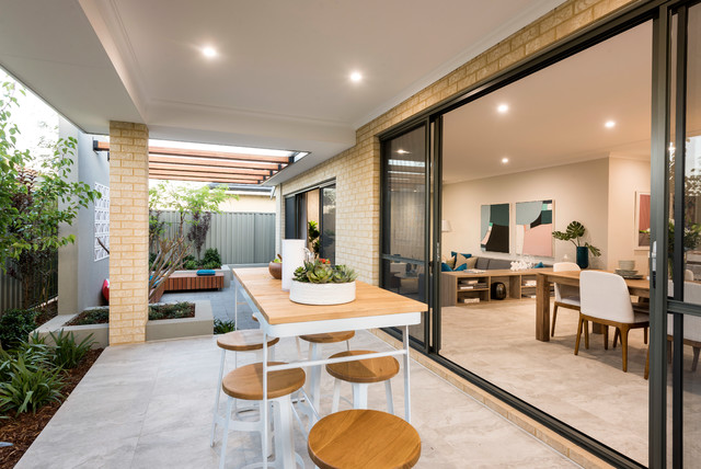 Inspiration for a contemporary backyard patio in Perth with tile and a roof extension. — Houzz