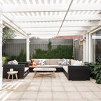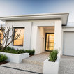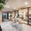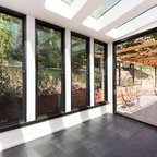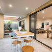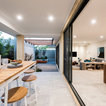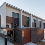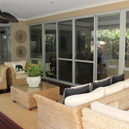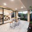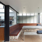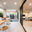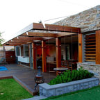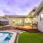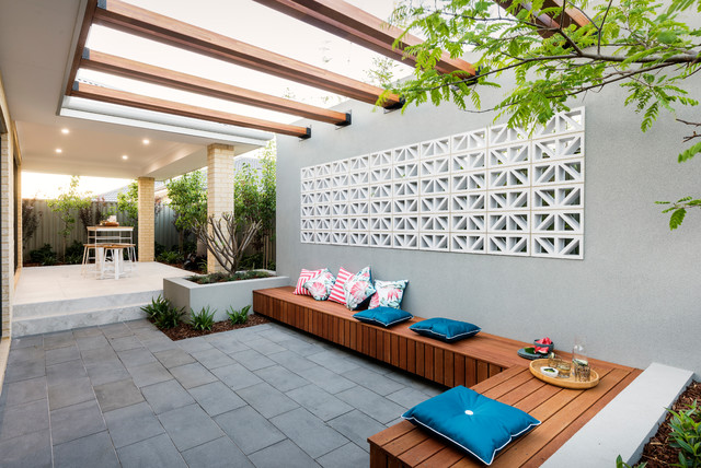 Large contemporary backyard patio in Perth with a container garden, a roof extension and concrete pavers. — Houzz