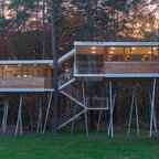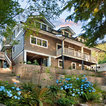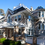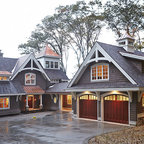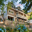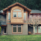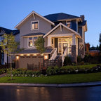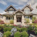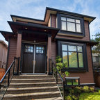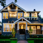 Photo of a large arts and crafts brown exterior in Vancouver with wood siding, three or more storeys and a hip roof. — Houzz