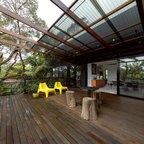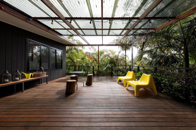 Design ideas for a mid-sized contemporary side yard deck in Sydney with a pergola. — Houzz