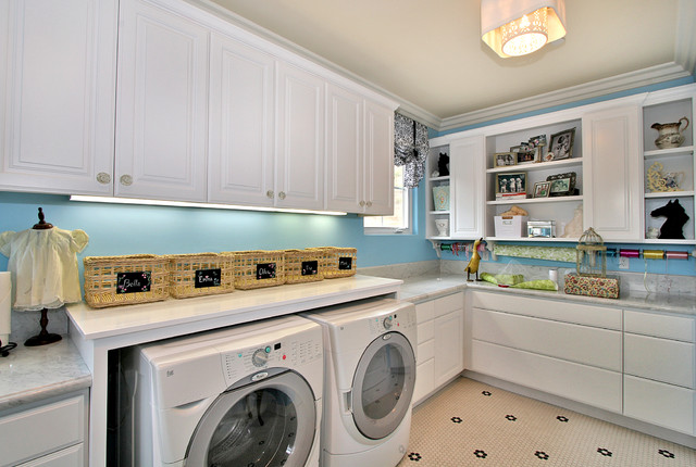 Inspiration for a contemporary laundry room in San Diego with white cabinets. — Houzz