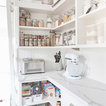 When it comes to food storage, Dominique McAdam, owner of Provincial Kitchens, says slimline open shelving – between 100 and 300 millimetres wide – installed above the benchtop allows you to see everything at a glance and prevents items getting lost behind each other. Floor-to-ceiling storage will maximise the amount of space available. Put those items used infrequently up top and consider installing a ladder for access.See more stunning kitchens