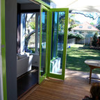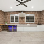 Design ideas for a large contemporary backyard patio in Perth with concrete pavers and a roof extension. — Houzz