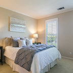 Transitional bedroom in Minneapolis with grey walls and carpet. — Houzz