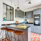Inspiration for a transitional kitchen in Paris with grey splashback. — Houzz