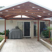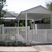 Mosman Park project Hip Roof double carport, painted timber frame, Colorbond roof, Merbau decking to front porch