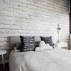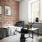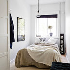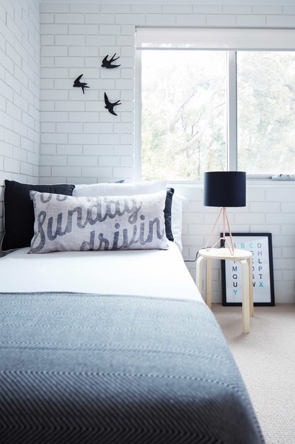 Inspiration for a scandinavian guest bedroom in Central Coast with white walls and carpet. — Houzz
