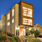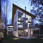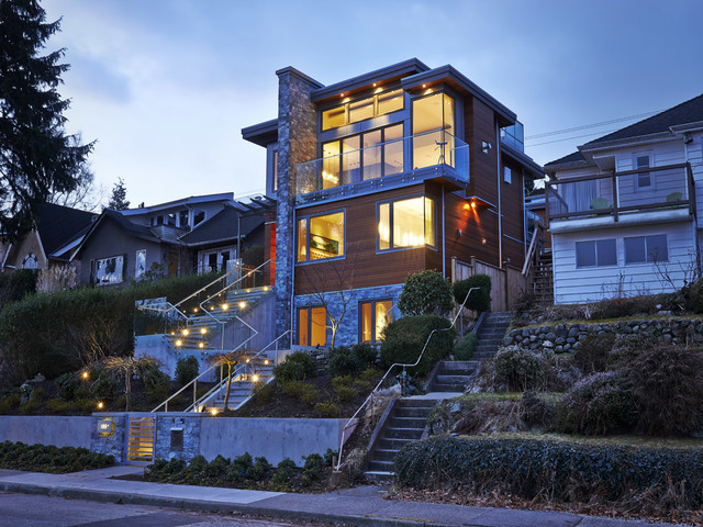 Inspiration for a contemporary exterior in Vancouver with three or more storeys and wood siding. — Houzz