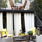 3. Urban escapeOn an inner-city balcony, the gentle citrus and aquamarine tones of these soft furnishings provide a sense of serenity. A perfect escape from the fast pace of the streets below. Utilising two tones – these are analogous colours that are next to each other on the colour wheel – not only creates a serene environment, but manages to give a tight space the feeling of a more roomy outdoor zone.
