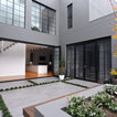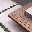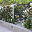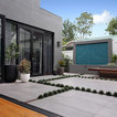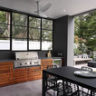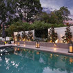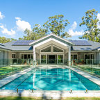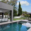 Modern contemporary pool and garden with undercover outdoor dining area.