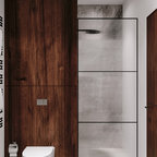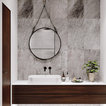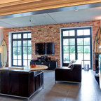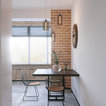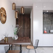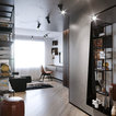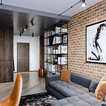 - parete mattoni -soffitto ingresso in resina grigia con faretti - libreria metallo nero