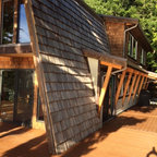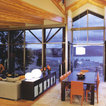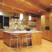 This kitchen is open to the dining/ living room and offers unrestricted views to the lake below