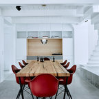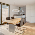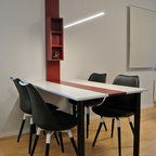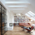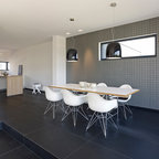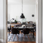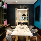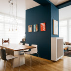 This is an example of a mid-sized contemporary separate dining room in Essen with blue walls, no fireplace, grey floor and concrete floors. — Houzz