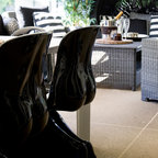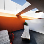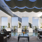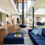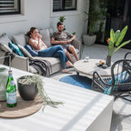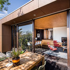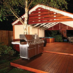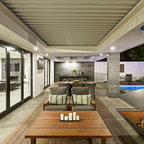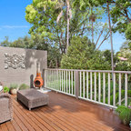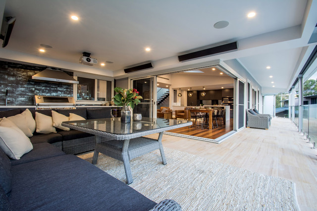 Design ideas for a mid-sized transitional deck in Sydney with an outdoor kitchen and a roof extension. — Houzz