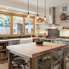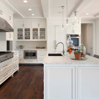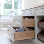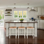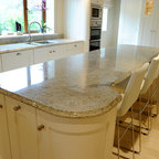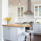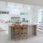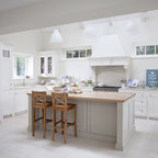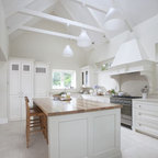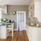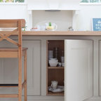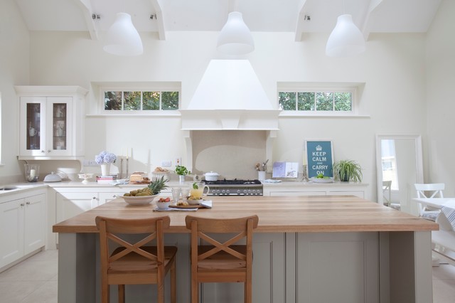 Inspiration for a traditional kitchen in Dublin with recessed-panel cabinets, white cabinets and wood benchtops. — Houzz