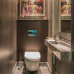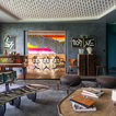 C’est dans un foisonnement arty que la sculpture en bronze Torse concave, de Robert Couturier, Galerie Downtown Pa- ris, trône en majesté sur la table de jeu entourée de ses quatre chaises Collection Ollo dessinées par Alessandro Mendini et Alessandro Guerriero pour Alchimia.