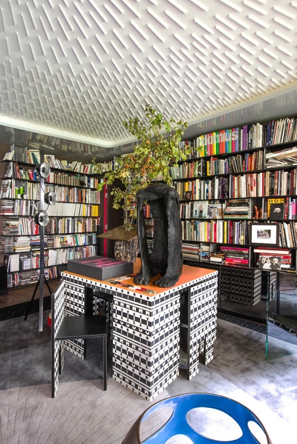Large eclectic study room in Paris with a freestanding desk. — Houzz