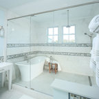Master bathroom look I like the half wall tile. Let's talk about it.