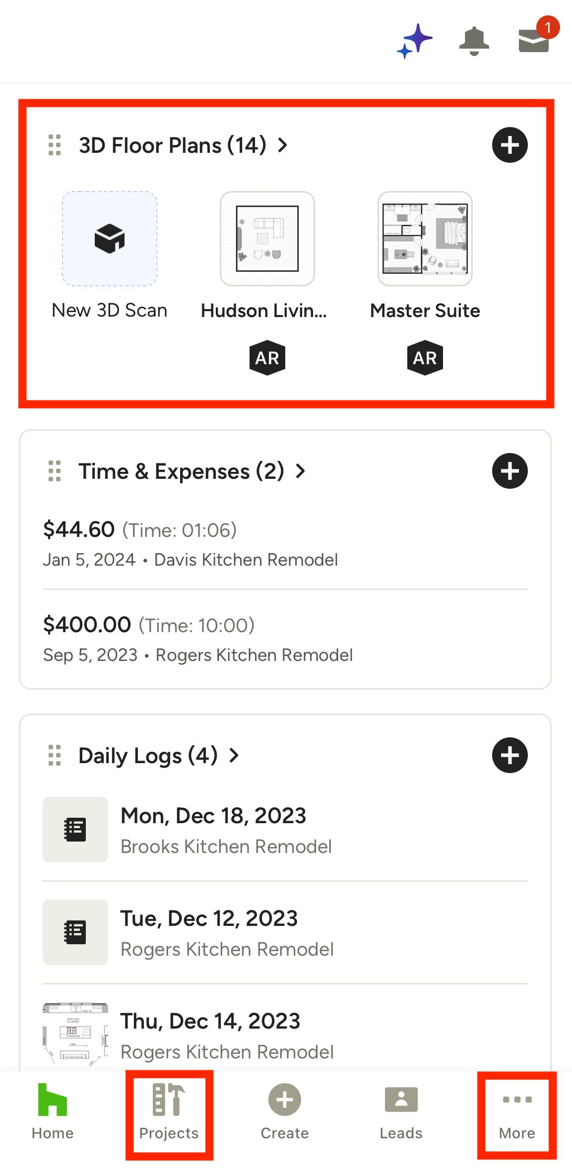 To view a 3D floor plan, open up the Houzz Pro app. From the homepage, you can either: