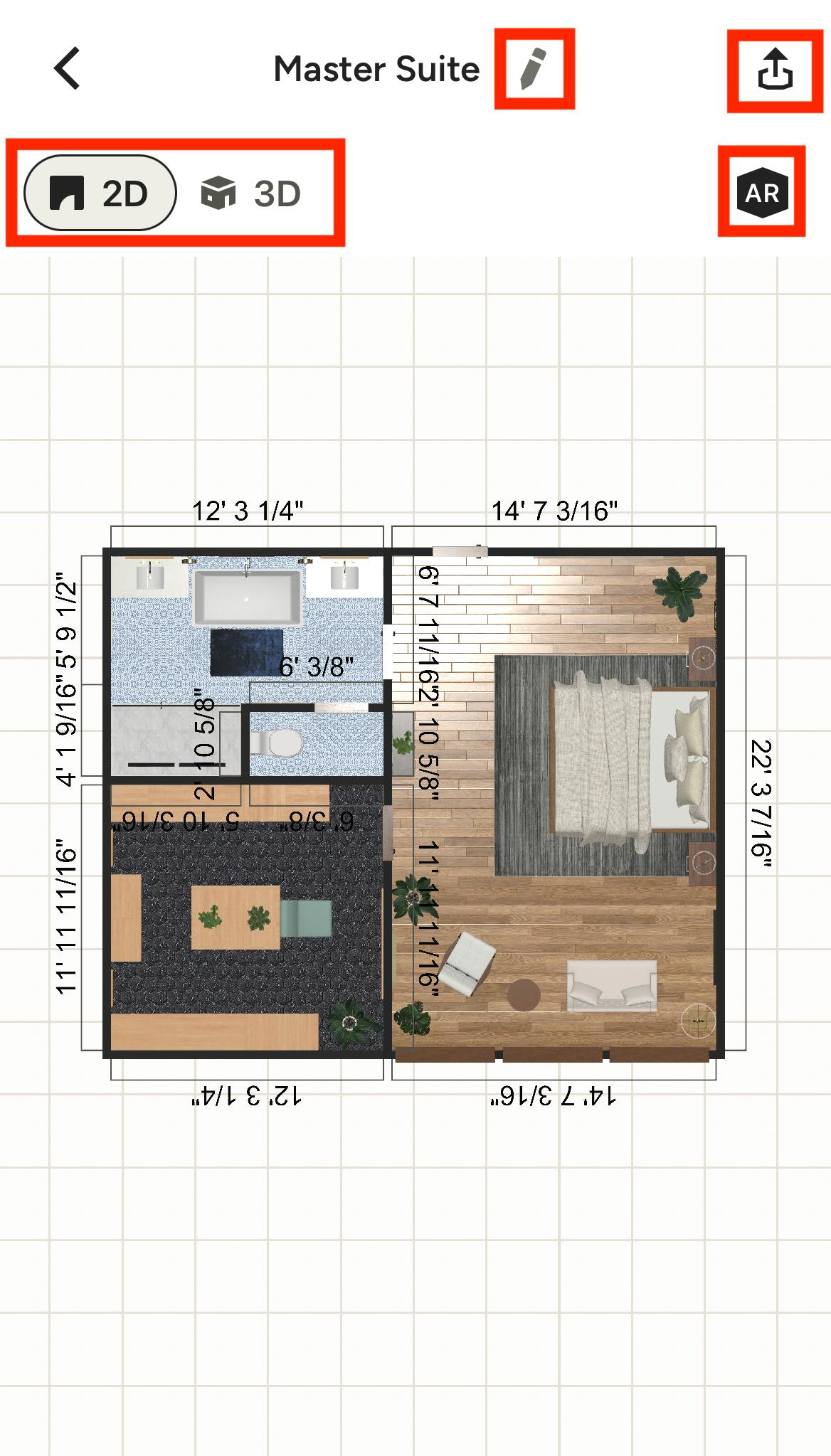 While you are not able to edit an existing 3D floor plan's measurements or design on your mobile app, you can view existing floor plans on your device.