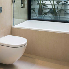Commented: Very soothing and efficient use of space Polished chrome patch fittings from Feathers. Toughened glass shower door.
